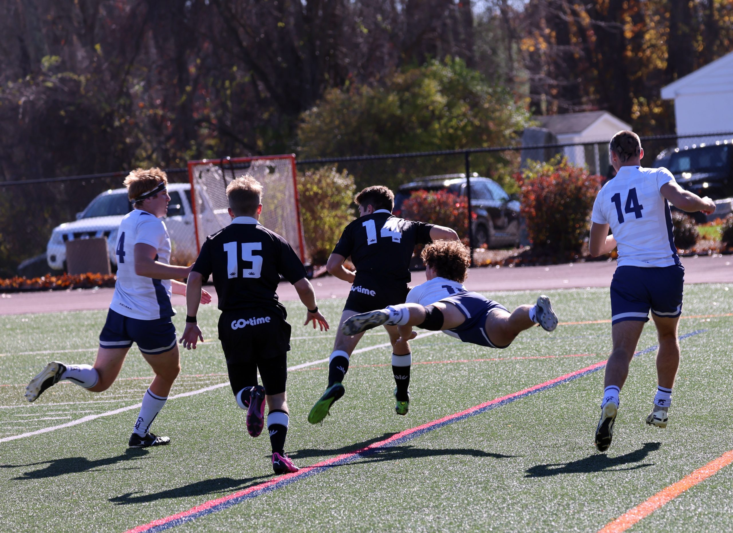 The Providence College Friars took an early lead on Saturday, and held that gap despite a strong showing by Middlebury later in the game. Although Middlebury scored five tries and made two conversions, it was not enough to repair the damage incurred by Providence’s explosive early minutes of the game.